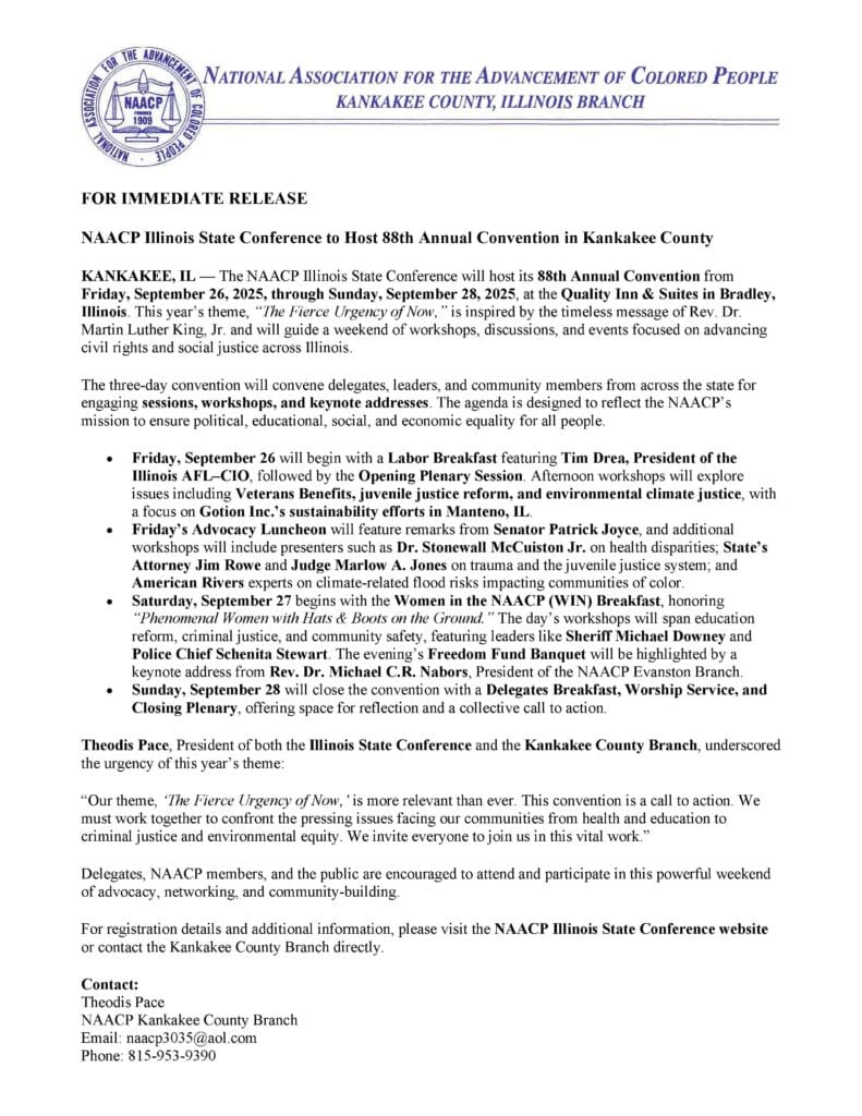 Kankakee County to Host NAACP 88th State Conference
