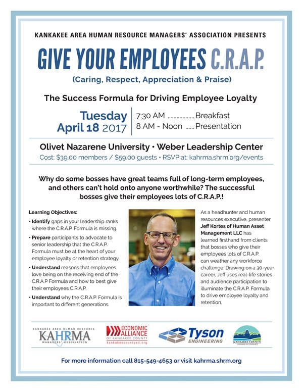 The Economic Alliance is proud to sponsor this timely half-day seminar hosted by the Kankakee Area Human Resource Managers’ Association. For more information or to register, visit kahrma.shrm.org/events/2017/04/april-18-2017-half-day-seminar.