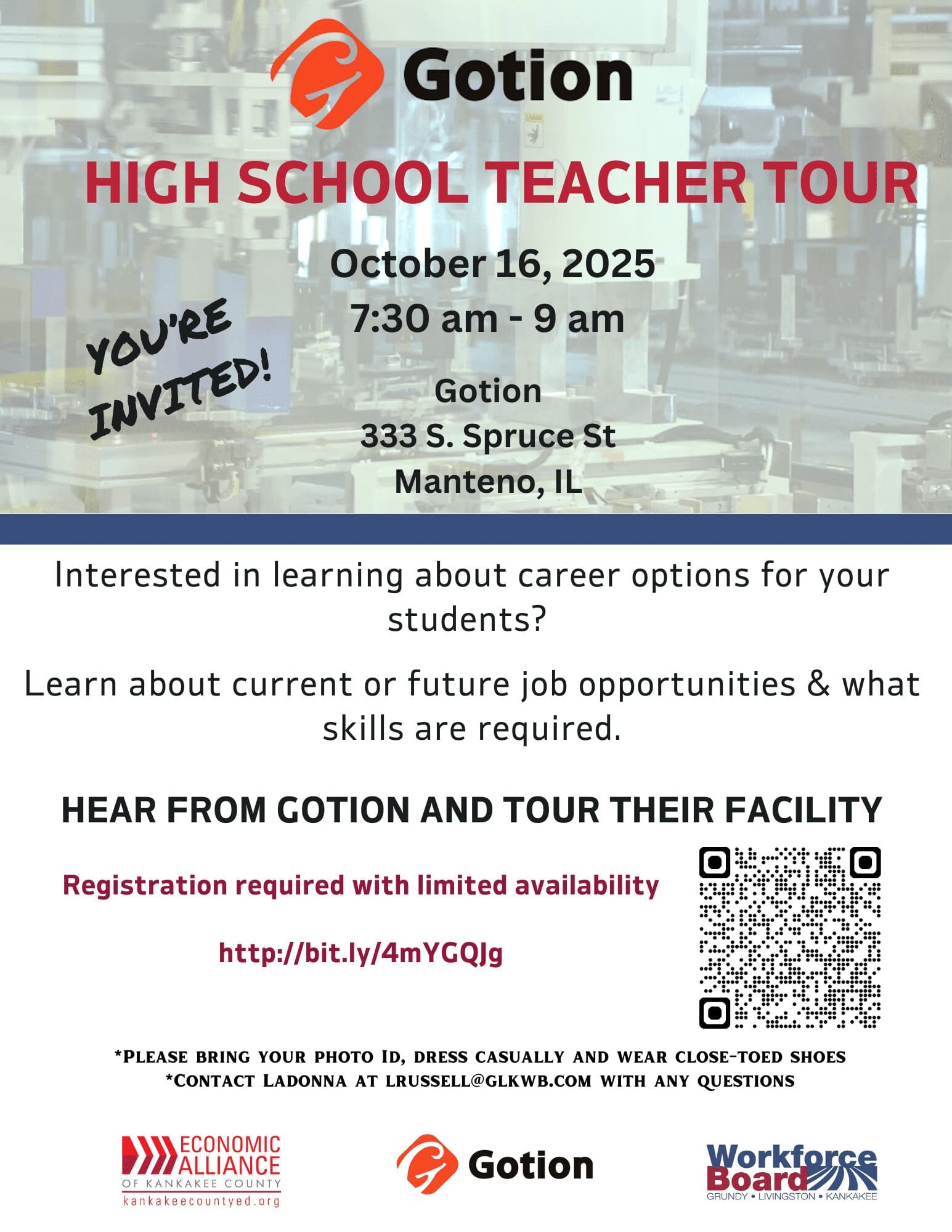 REGISTER HERE: https://www.eventbrite.com/e/employer-tour-for-high-school-teachers-tickets-1680308380599?aff=oddtdtcreator